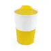 The Demi Tumbler is the perfect promotional product for busy customers who love to travel. With a generous 350ml capacity, this reusable drinking tumbler features a rubber-feel bottom half for grip and heat protection. Your branding will be prominently displayed on the white tumbler body, while the coloured lid and grip can be customized to coordinate with your brand. This product conforms to all food safety regulations, providing peace of mind for both you and your customers. Ideal for use on the go, the Demi Tumbler is a must-have for any travel mug or flask collection.