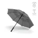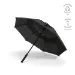 Prince 23'' rPET umbrella. Storm-proof and fibreglass structure, rABS vertical handle and 8 panels. Opens automatically for quick shelter. The velcro strap closes the double canopy frame. Eco-friendly packaging in a rPET individual pouch. Stay dry with style adding your logo to the dedicated area on the the handle.