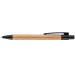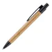 A push action ball pen featuring a Bamboo barrel and recyclable plastic trims.